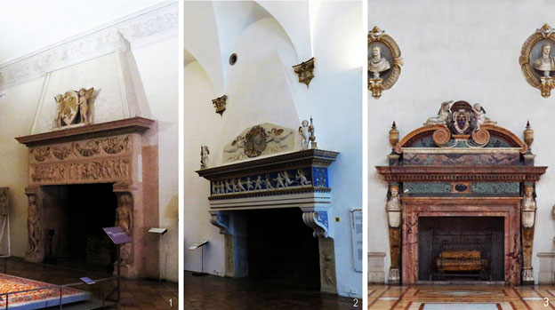 1–2. Камины в палаццо Дукале в Урбино. 1465–1474 гг. 3. Камин в палаццо Фарнезе в Риме. 1549–1575 гг.