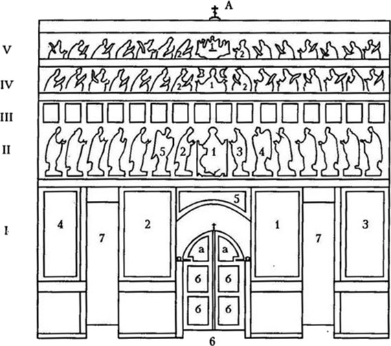 Схема классического иконостаса взята из издания: Языкова И.К. Богословие иконы. М., 1995. С. 45.