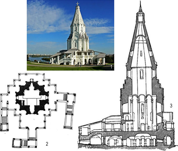 Первым и одним из лучших памятников этого ряда стала каменная домовая церковь Вознесения (итал. арх. Пьетро Аннибале, 1530 г.; ил. 54.1) в великокняжеском селе Василия III Коломенском под Москвой.
