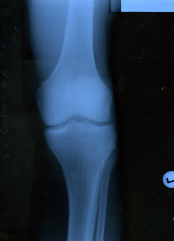 В сентябре 2012 года, когда уже оба сустава по кругу обострялись ни один раз, в очередной раз случилось обострение, и я все-таки решил обратиться к коллеге-хирургу за обследованием и профессиональной помощью. После общего осмотра было назначено рентген-обследование коленных суставов (все снимки представлены ниже).