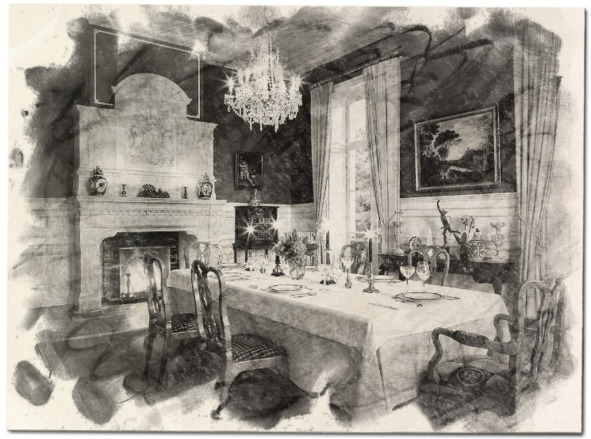 В гостиной замка епископа собрались гости. Четыре человека бурно беседовали о чём-то между собой, когда он и Орлова вошли. Все были одеты в вечерние наряды. Появление хозяина остановило разговор и заставило гостей повернуться.