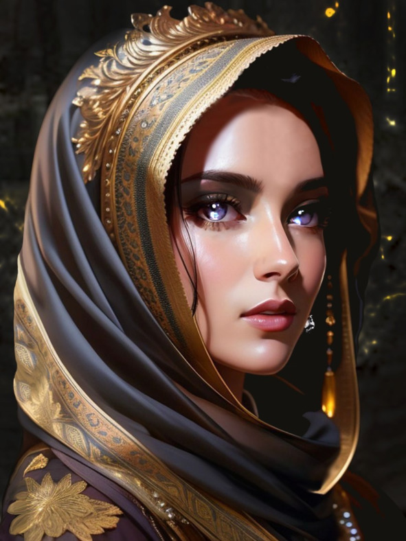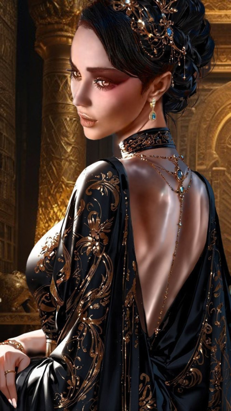 – «Чья та спальня наверняка!» – подумал он и не напрасно. Немного ближе к середине была расположена красивая ложа из чёрного дерева. Комната та огромна, и вся золотыми узорами облажена. Прекрасный, ничем несравнимый аромат пьянил, сому душу. Его глаза за светились и сердце заполыхало огнём. Он поставил котёнка на подушку и подошёл к той ложе. Всё чаще билось его сердце. Прекрасная царица та, что влюбился он с первого взгляда, спала с улыбкой на лице, словно снился ей что-то прекрасное во сне. Её густые, чёрные как шёлк волосы, так были ей к лицу. Она спала смиренна, что даже постель не помялась. Накрыта тонкой, блестящей покрывалом, словно дитя, так мила и нежна. Кожа словно мрамор чиста и ухожена была. Она была прекрасна и даже больше для него. Волосы её зашевелились подобно волнам и казалось, что с них кто-то смотрит на него.