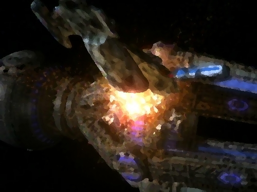 В следующий миг раздался грохот от сильного удара, и на лифтовой переборке появилась вмятина, которая выгнулась в нашу сторону. Через секунду был опять удар, в другом месте появилась вторая вмятина, такое чувство, что за металлом, который нас разделяет, стоит группа молотобойцев, которые хотят тупо вынести переборку ко всем чертям. После чего удары начали сыпаться один за другим, с каждым разом металл все сильнее искривлялся. В такой момент у меня проскользнула мысль: почему они не проплавили металл или не вырезали своими энерго-клинками?