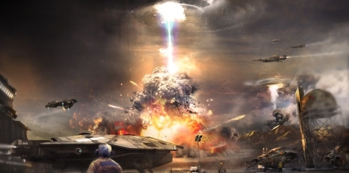 Я думал всё, одного из них точно раздавили, но ошибся, наши боевые скафандры точно не смогли бы пережить такое, а этого урода просто придавило, но он всё равно трепыхался и пытался вылезти из-под металлического листа. Второй в этот момент открыл огонь по тому месту, откуда скатился этот лист, но думаю, что там давно уже никого не было. После этого последнего разведчика жители свалки начали поливать из всего, что у них было, а это могли быть только боевые штурмовые комплексы и многое другое, только немножко устаревшие. Бронебойные иглы чиркали по броне разведчика, но урон, который они наносили, нельзя было назвать существенным, через бинокль я заметил, что на его броне начали появляться небольшие вмятины. А тот в свою очередь начал отстреливаться из своего странного оружия и если он хоть раз попадал по кому-нибудь, то это был смертельный приговор.