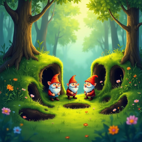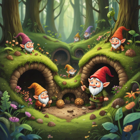 Жила-была в глубине леса волшебная Долина Тысяч Дыр. На первый взгляд, это было просто мягкое зелёное поле, усыпанное мхом, цветами и… множеством крошечных дырочек, едва заметных глазу. Но если приглядеться внимательнее – в этих дырочках жили гномики. Очень маленькие, не больше лесного орешка, и звали их Дырники.