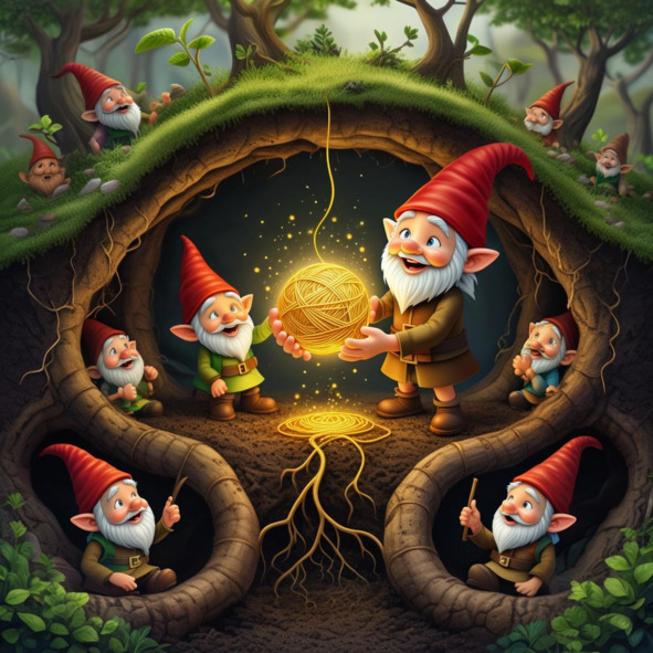 Каждое утро Дырники выползали из своих земляных норок, потягивались, чесали крошечные бороды и принимались за работу. Видите ли, они были не просто гномики, а хранители баланса: их дело было следить, чтобы земля не трескалась, не проседала и не рассыпалась под тяжестью деревьев, шагов зверей и капель дождя.