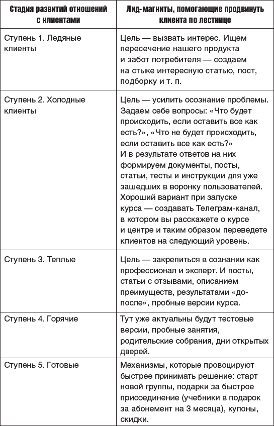 Эти клиенты, как мы уже знаем, находятся на разных ступенях теплоты по отношению к покупке курса. И если с тем, кто оставил заявку на курс, мы общаемся о подборе удобного расписания, подходящего курса, то с теми, кто на стадии осознания потребности в курсе, мы строим диалог иначе.