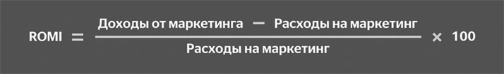 ROMI считается в процентах. И помогает отследить эффективность рекламных источников.