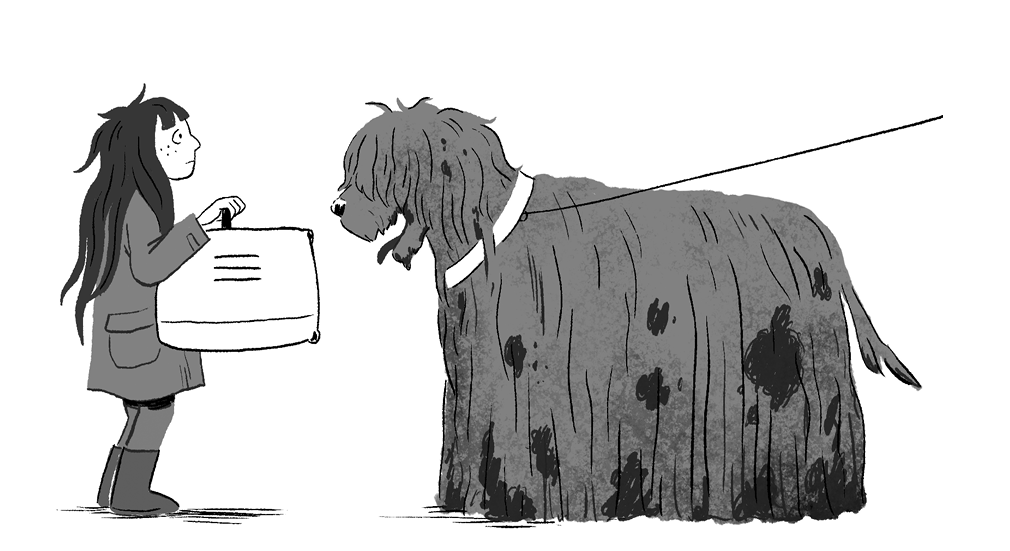 Там нас встретила весьма необычная фауна – как человеческая, так и животная. Высокая сухощавая дама, чьи волосы напоминали грязную швабру, с долговязой собакой в косичках, пропитанных какой-то грязью или чем-то ещё, о чём я предпочёл не допытываться. Невысокий коренастый господин с выражением вызова на лице и потухшей сигарой во рту, а с ним мопс без сигары, но с таким же выражением вызова на морде. И наконец, дама, целиком закутанная в меха, держала на руках собаку с ещё более густым мехом.