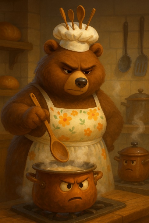 Masha didn’t just make porridge – she ran culinary discipline. No one dared sneak a bun without permission. Anyone who tried got The Glare – and it was filled with stuffing.