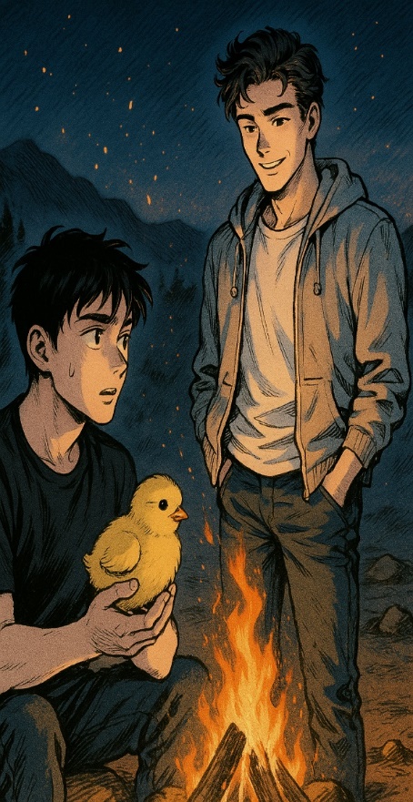 – "Вижу, что в тебе зажглось большое пламя, сынок," – сказал он, прищурившись. – "Любовь – не шутка. Она заставит тебя идти туда, куда разум боится шагнуть."