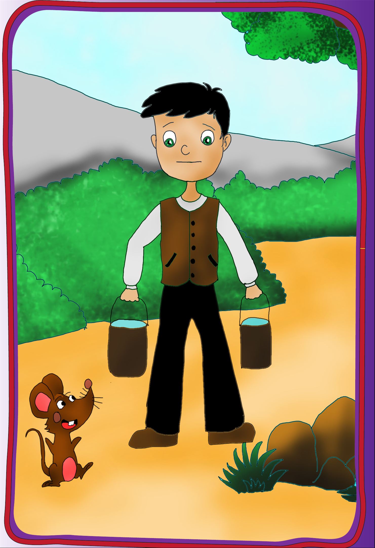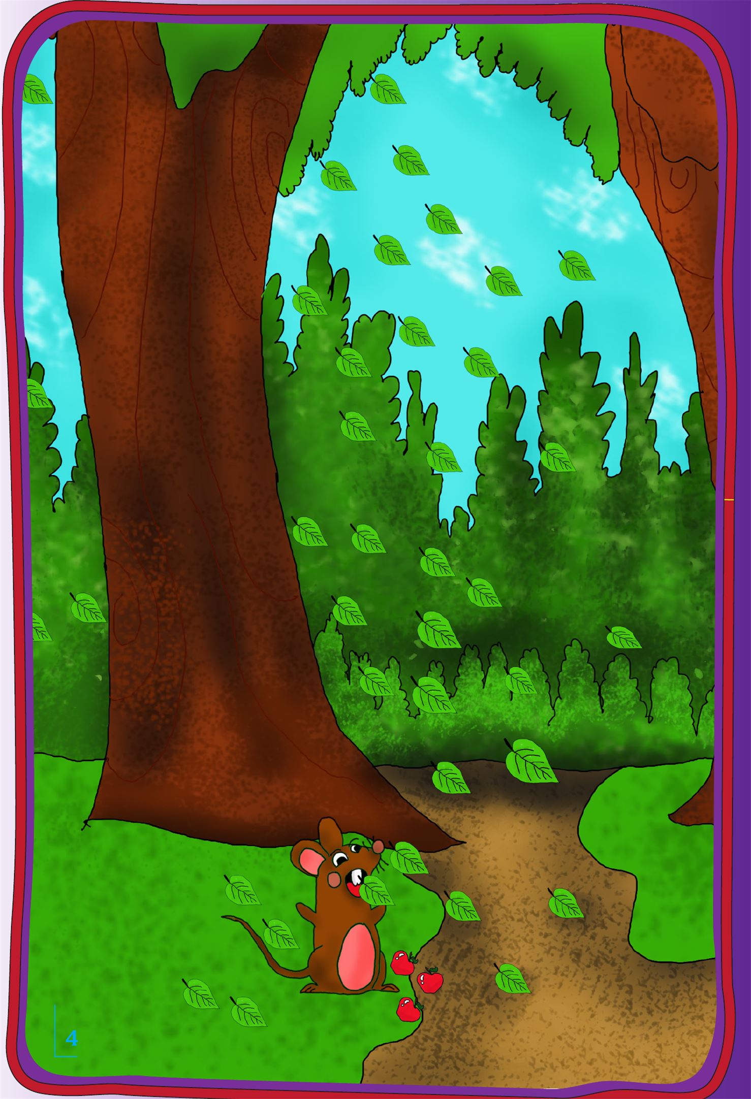 Eski zamanların birinde, kırlarda yaşayan bir fare vardı. Bir gün karnı acıktı ve bir bahçeye girdi. Üç tane elma kopardı ve yedi. O sırada bir rüzgâr esince, ağacın yapraklarını silkeledi ve farenin başına döktü. Fare buna öfkelendi, o yaprakları da yedi ve ardından bahçeden çıkıp gitti. Elinde su kovasıyla evine gitmekte olan bir adam gördü. Fare adama seslendi: