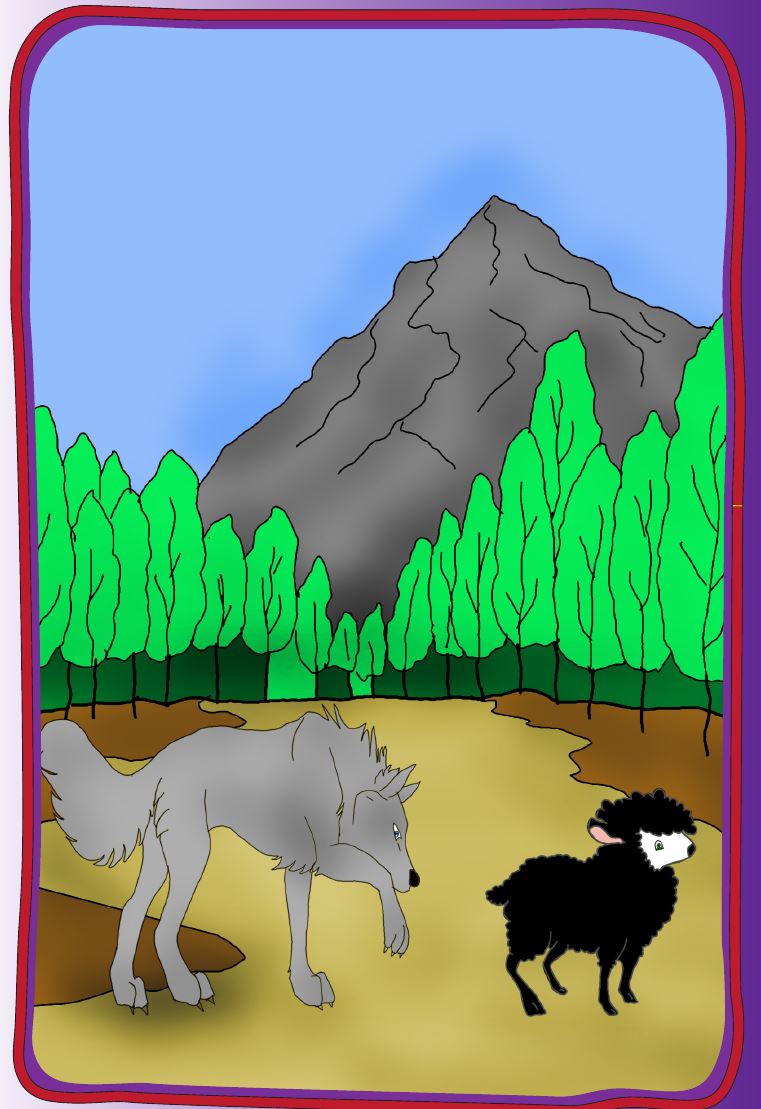 Eski zamanların birinde, siyah bir kuzu yaşardı. Günün birinde, her zaman yaptığı gibi başı yerde ve kendi hâlinde otlarken, bir anda kafasını kaldırınca, ne çobandan ne de sürüden bir haber olduğunu gördü o gafil yüreği. Aç bir kurdun da kendine doğru yaklaştığını fark etti. Kurdun gözleri, kan çanağı gibiydi âdeta.