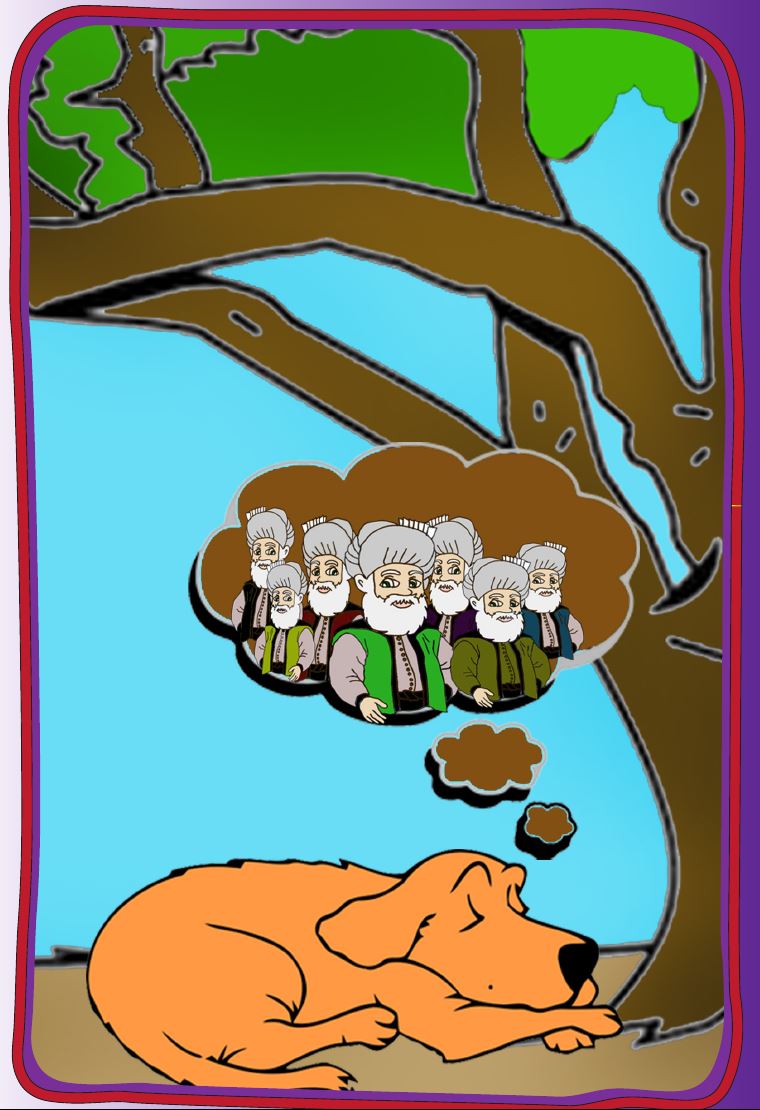Kurt elini ağaca uzatıp yemin etmeye davranınca, köpek rüyasından sıçrayarak uyandı ve bir anda kurdun boğazını kapıverdi.