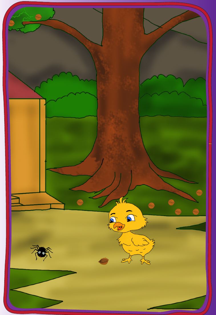 Yaşlı kadının bahçesinde dalları gür, yaprakları bol bir de ceviz ağacı vardı. Cevizlerin olgunlaştığı mevsim geldi mi civcivin keyfine de diyecek olmazdı. Rüzgâr vurunca olgunlaşmış cevizler yere düşer, civciv de bunları kırıp bir güzel yerdi.