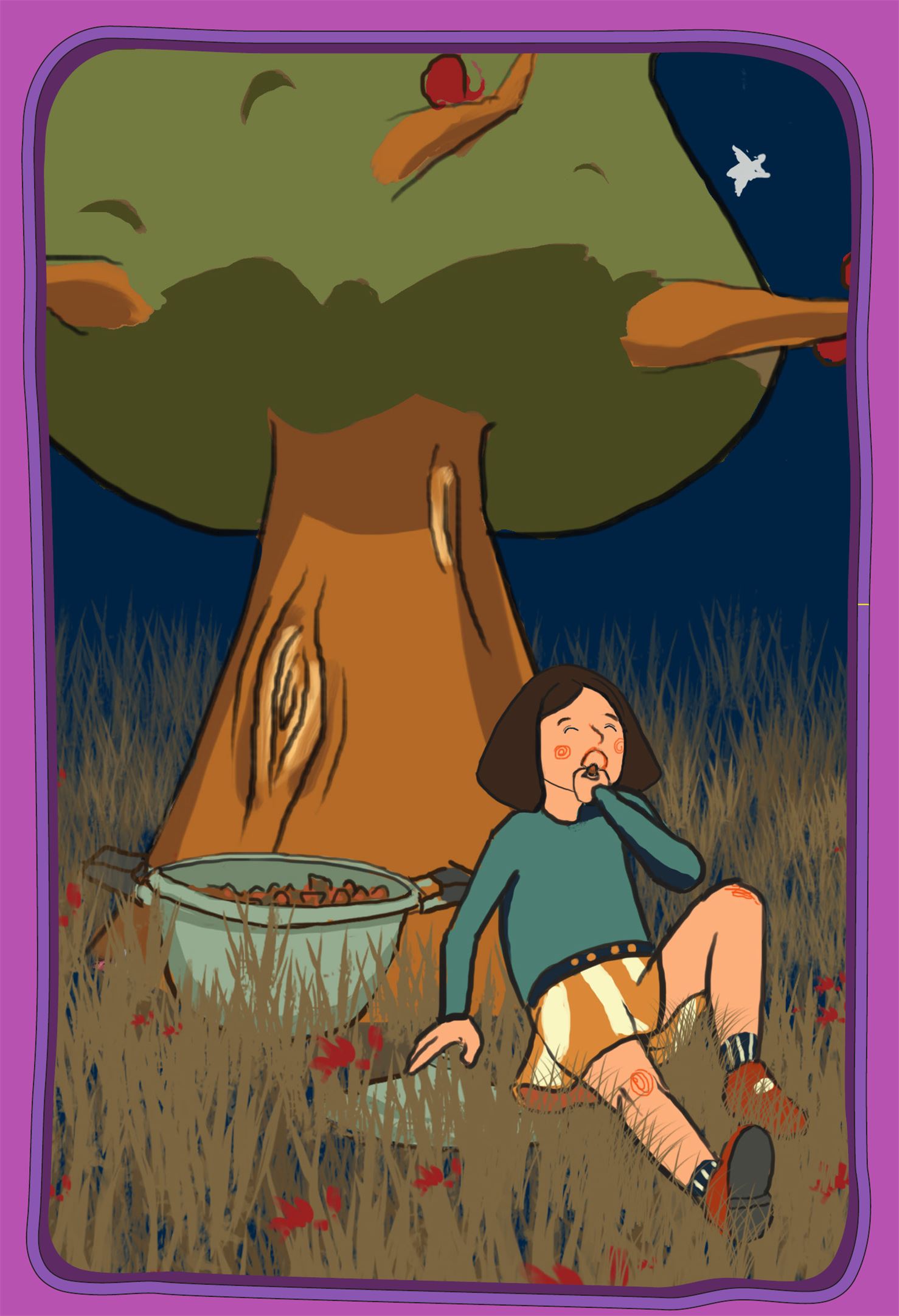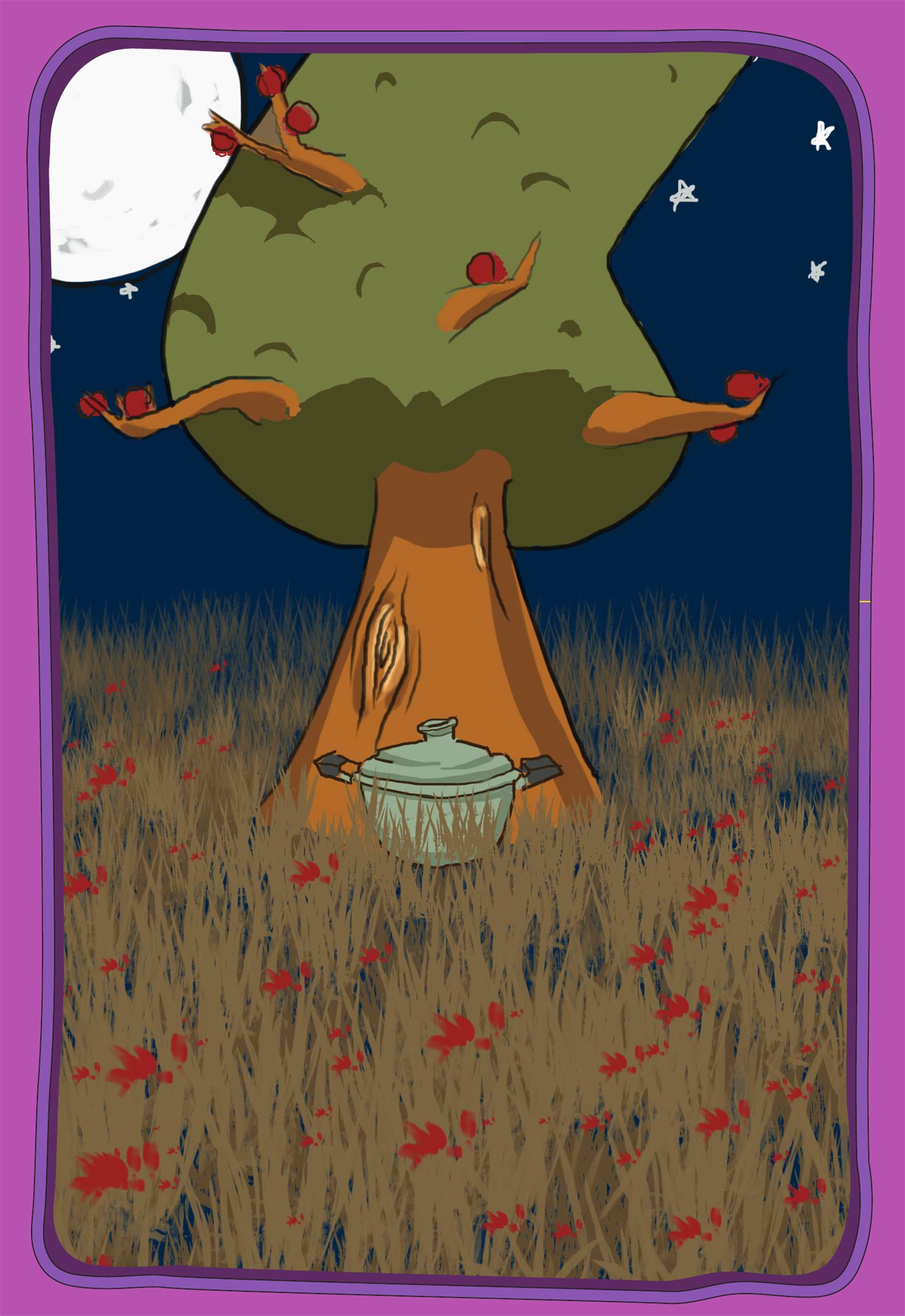 Peri, kadının koluna girdi yeniden ve bahçeye çıktılar birlikte, çıkınca gördüler ki Ulduz hâlen daha dut ağacının dibinde oturmuş, tencereden et parçalarını alıp alıp iştahla yemekle meşgul, bir yandan da “Aman ne güzelmiş!” deyip, parmaklarını emmekteydi. Üvey annesi onu görünce çıldırdı: