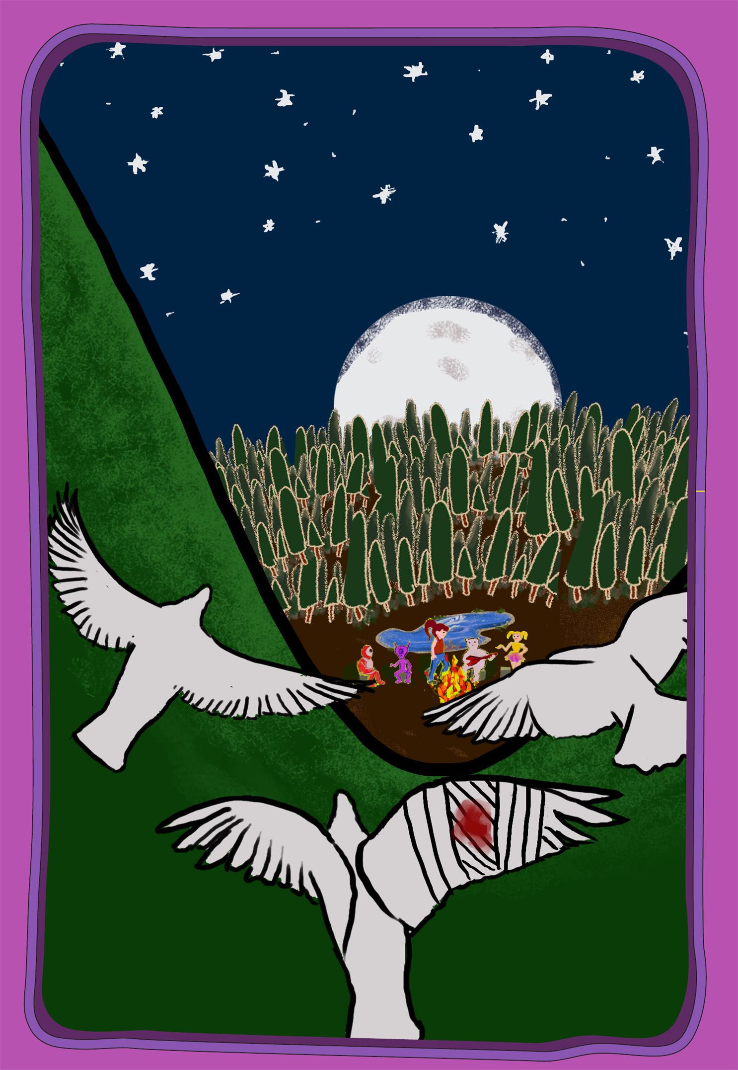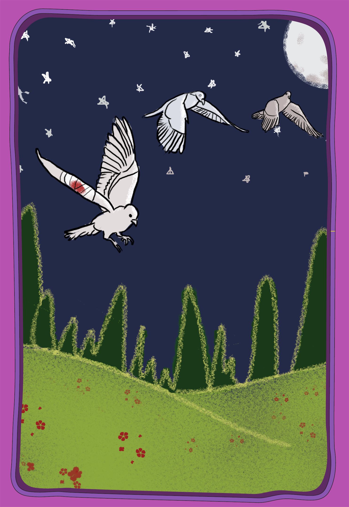 Ay yavaş yavaş yükseliyor, gölgelerse kısalıyordu. Güvercinler artık şehirden epeyce uzaklaşmışlardı. Kanadı kırık olan güvercin ortadaki güvercine,