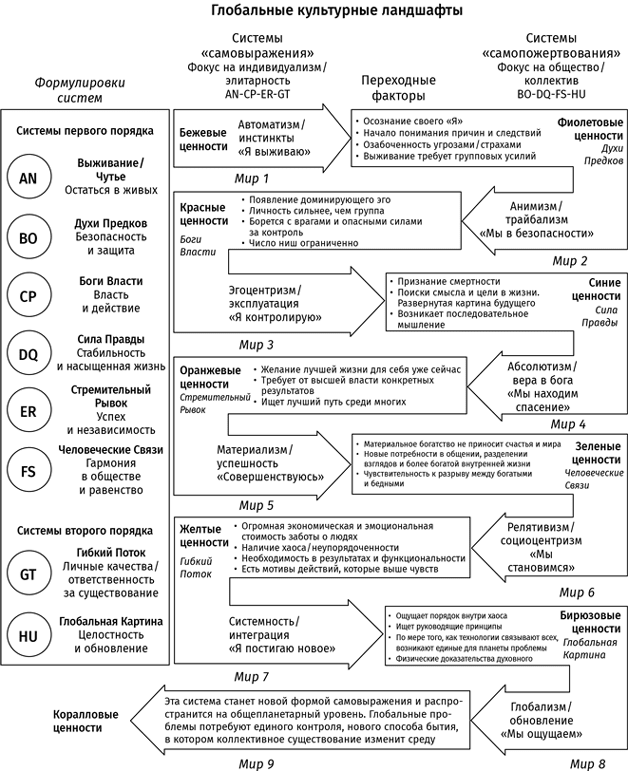 Мы также будем обращаться к книге Бека и Линскотта «Плавильный котел: Создавая будущее ЮАР», первое издание которой вышло в 1991 г., а последующие – в 2006, 2001 и 2014 гг., и к классической работе Бека и Кована «Спиральная динамика: Управляя ценностями, лидерством и изменениями в XXI веке», вышедшей в 1996 г. и переизданной в 2006 г. В части 5 упоминаются и другие публикации, содержащие детали теории спиральной динамики и многочисленные примеры ее применения.