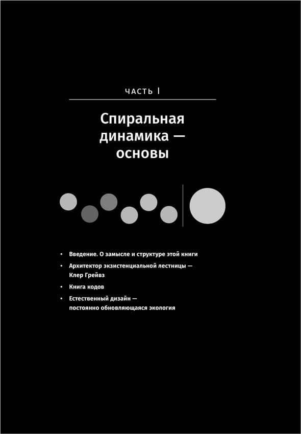 Структура книгиКнига состоит из трех частей (ниже они будут описаны подробнее). Поскольку между частями книги имеется системная, целостная и взаимодополняющая связь, главы из одной части могут упоминаться и в других. Разные части книги могут вызывать к себе разное отношение. Следует помнить, что работу выполнял коллектив соавторов, системы ценностей которых применительно к спиральной динамике могут разниться, поэтому какие-то части книги могут быть легче для восприятия, а другие, наоборот, казаться непонятными или даже излишне сложными. Рисунки и таблицы в начале книги наглядно и схематично продемонстрируют читателю научные аргументы, которые в дальнейшем будут изложены в тексте.