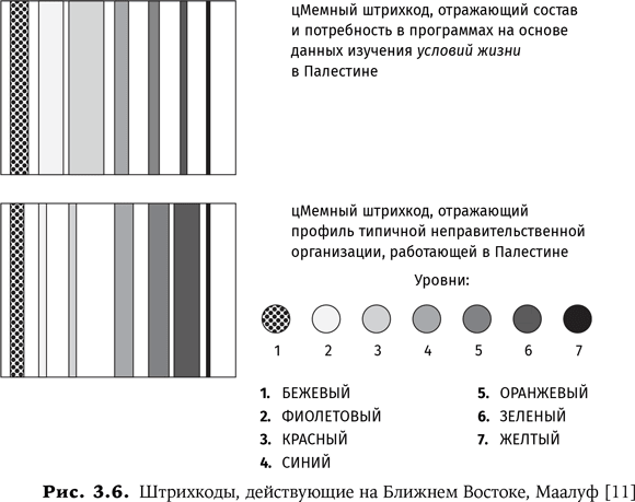 Весьма действенный и креативный способ демонстрации кодов индивидуумов и коллективов – это разработка их штрихкода. На рис. 3.6 представлен штрихкод современной ситуации на Ближнем Востоке, подготовленный доктором Кевином Келлсом.