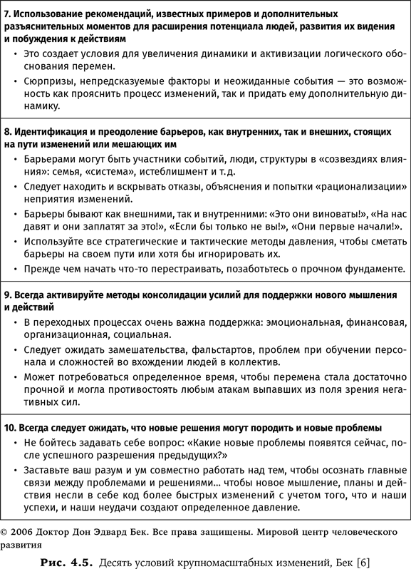 Стратегические трансформацииНа рис. 4.5 показана Большая десятка условий для осуществления крупномасштабных трансформаций: