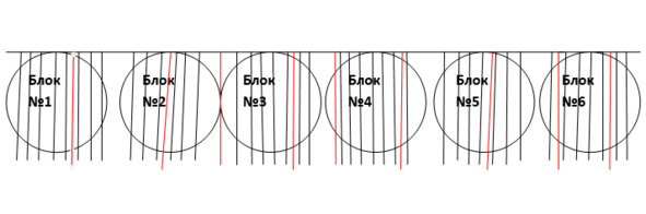На рисунке чёрными вертикальными линиями схематично обозначены вопросы, подразумевающие краткие ответы, а красными линиями обозначены вопросы, подразумевающие полные ответы или выполнение определённых упражнений, дающих результат.