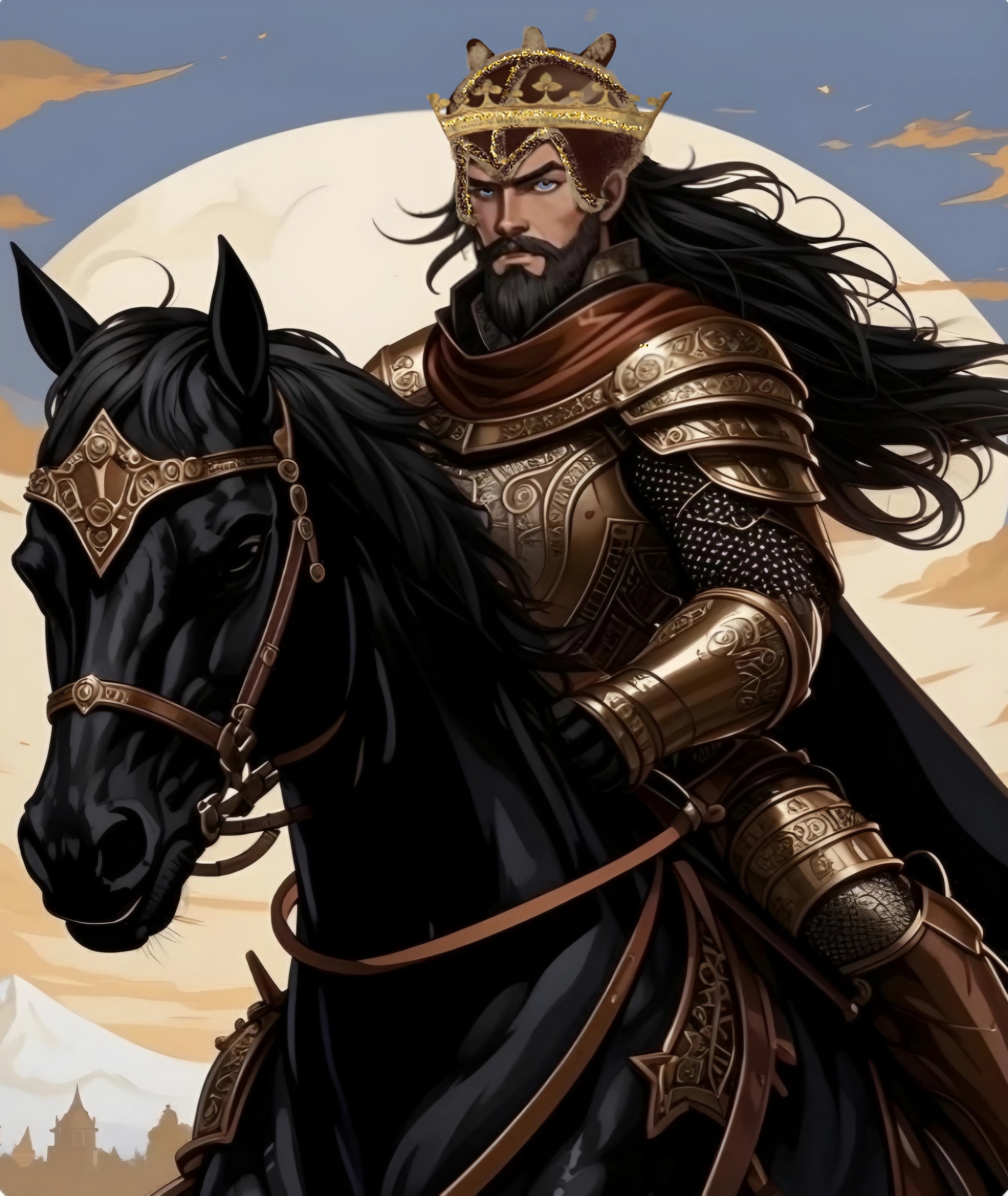 Всадник впечатлял: с окладистой чёрной бородой, густыми бровями, широкоплечий, весь в кожаных одеяниях и с двумя массивными мечами на поясе.