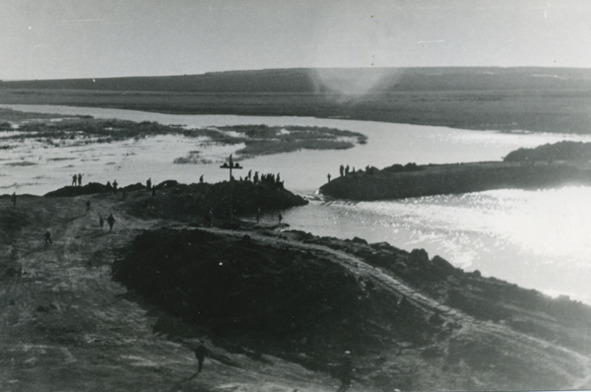 Момент строительства плотины на Шершнях. 60-е годы. Фото из архива семьи Лаптевских