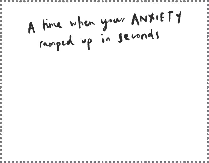 Can you think of a time when your anxiety went from zero to a hundred in seconds? It’s good to get it out – I can look back and laugh about it (a bit) now and the more I tell people these stories, the less powerful they seem. No, the less powerful they ARE.