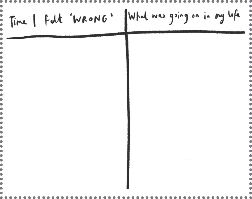 Now make a note of a situation when you felt ill, ‘off’, wrong or rundown. Think about what was going on that day – were you worried about work? Were you having anxiety attacks a lot in that period? No need to be Sherlock Holmes – just jot down anything that comes to mind.