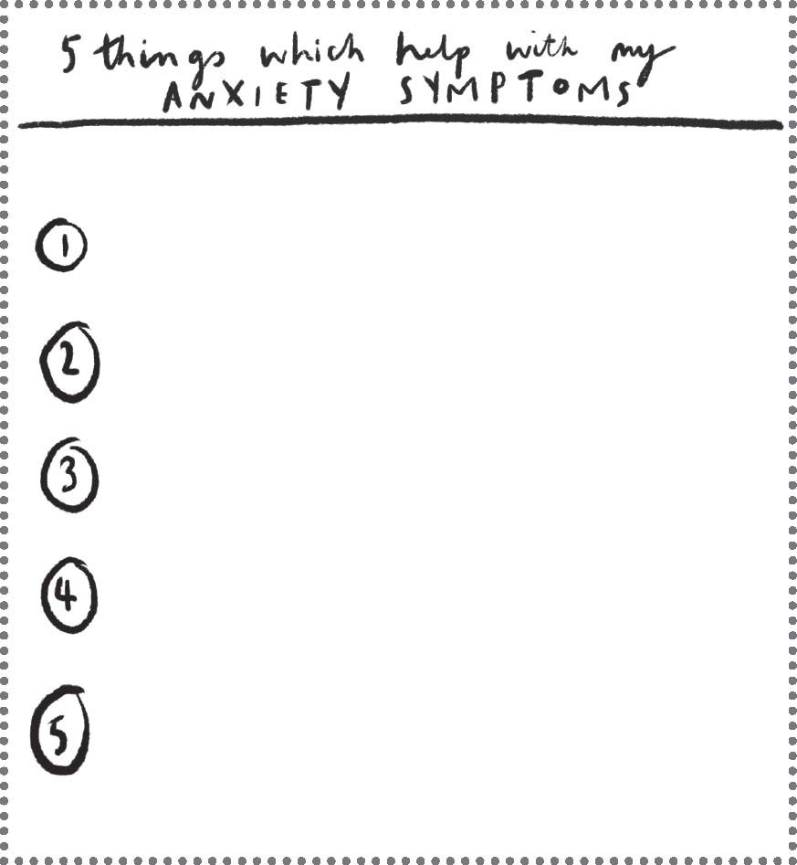 Write down five things you know help with physical symptoms of anxiety: