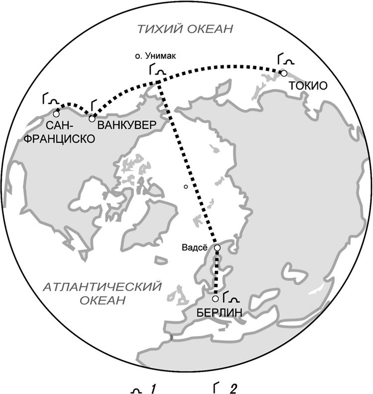 Первоначально планировалось проложить линию целиком вне советской территории. Промежуточная станция должна была находиться на острове Унимак в Алеутской гряде. Впоследствии, по мере нормализации российско-германских отношений, появились варианты с прохождением маршрута через Ленинград и Мурманск