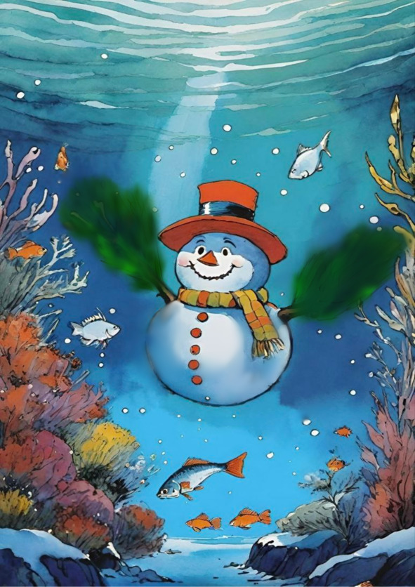 Засмеялись рыбки от радости, заплескались! Вот и у них праздник, вот и у них Новый год! Хорошо-то как! И Снеговик довольный – и мир подводный посмотрел, и себя показал, и праздник рыбешкам устроил. Красота!