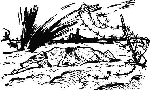Цепочка кустарника, изгибаясь дугой, приближалась к одинокому дереву уже с другой стороны. Минут через десять Султан был на противоположном конце дуги. Отсюда оставалось пробежать всего метров двадцать. Султан уже собирался выпрыгнуть из кустов, но вокруг стали рваться мины. Осколок одной из них ударил его по лапе. Султан взвизгнул, но остался лежать. Он знал: сейчас двигаться нельзя.