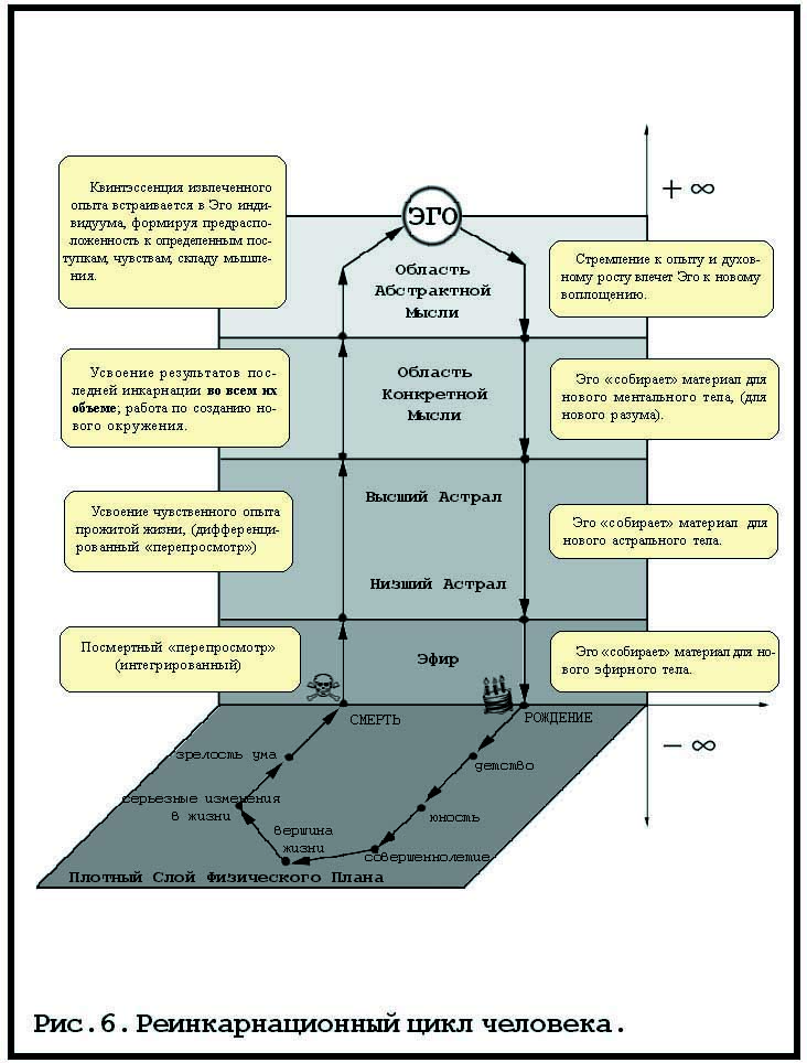 Кстати, выбор инкарнирующимся «Эго» новых родителей далеко не случаен. Здесь действует тот же принцип притяжения «подобного к подобному», который руководил строительством тел на «высших» уровнях (см. рис. 6).