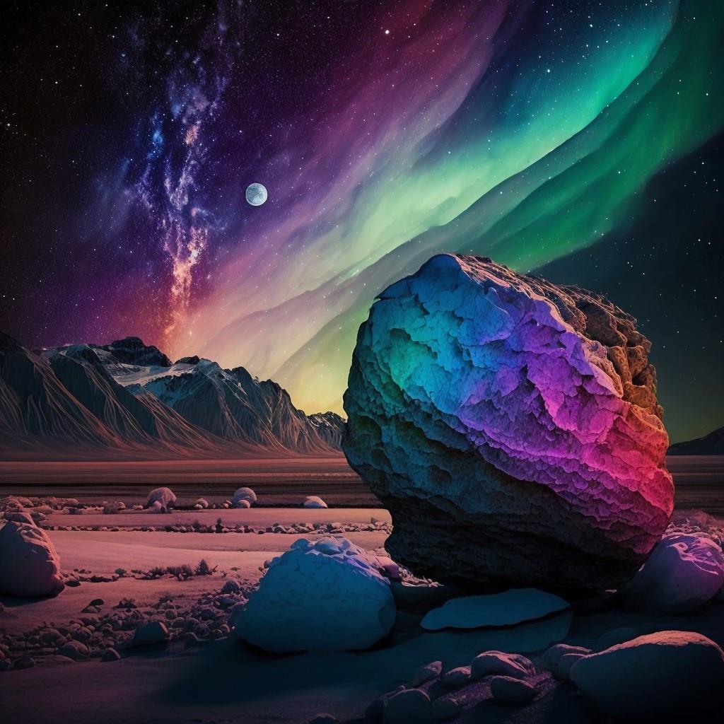 На небе величественно разливалась бурлящая река света, переливаясь всеми красками радуги и окутывая атмосферу таинственным сиянием. Потоки света, медленно плывущие на фоне звёздного неба, были окрашены в неоново-зеленый цвет с мерцающими прожилками синевы, в то время как более быстрые потоки поражали воображение ярко-красными оттенками. Завораживающие завихрения на миг меняли свой цвет с малинового на красно-оранжевый, создавая неповторимое зрелище. Слои света переливались друг в друга, плавно пульсируя и кружа в магическом танце.