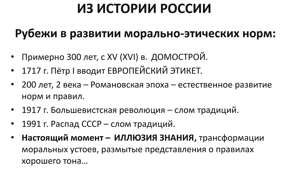 Главное № 2: Этикет в России, или Почему нам только кажется, что мы в европейской культуре. Почему следует изучать европейский этикет, как ПДД