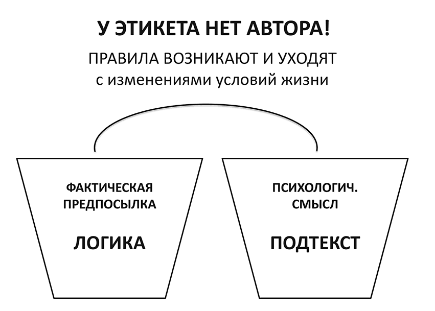 У этикета нет автора – правила никто не прописывает! Они существуют в культуре, возникают и исчезают в зависимости от изменений в жизни – социальных, экономических, политических.