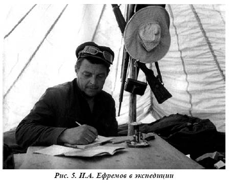 Ефремов пишет о том, что геологи и палеонтологи совершенно недооценивают масштаб времени. При этом процесс разрушения – деструкции осадочных пород, вмещающих в себе окаменевшие остатки позвоночных организмов, совершенно выпадает из поля зрения ученых. Отсюда распространенное заблуждение – палеонтологи считают, что в раннем палеозое на суше никто не жил. На самом деле, окаменевшие останки организмов, ведших сухопутный образ жизни, просто выпали из палеонтологической летописи вместе с вмещающей их окаменевшей породой.