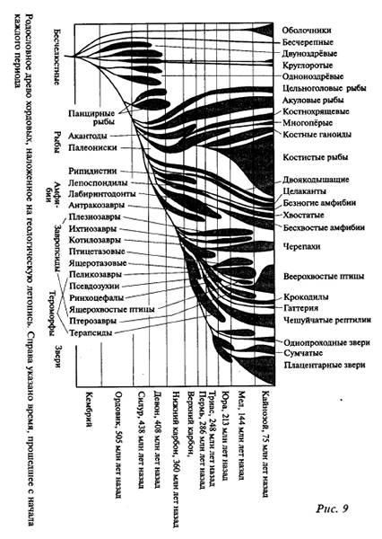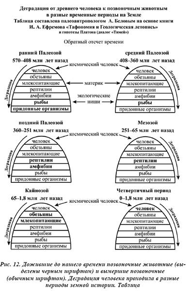 По сути дела, вся геохронологическая таблица (рис. 9) – родословное древо жизни от древних палеозойских рыб до современного человека является вымыслом. Ибо палеонтологами фиксируются не сами остатки животных, а геологические пласты их вмещающие (Родословное древо животного мира. Геохронологическая таблица. «Зоология позвоночных». Ф. Я. Дзержинский, «Академия», 2013 г.).