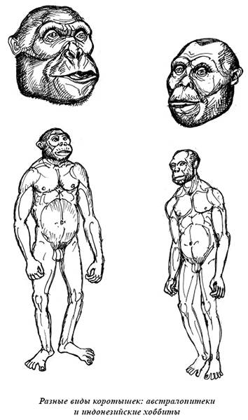К сказанному можно добавить, что руководитель раскопок австралийский антрополог Питер Браун окрестил вид древних ископаемых людей хоббитом, одним из персонажей писателя Толкиена. Очень может быть, что хоббиты-лилипуты, оказавшись в изоляции на острове, после того как поднявшаяся вода Всемирного потопа отрезала им пути к отступлению, стали вырождаться. Одним из признаков их вырождения и явился маленький рост.