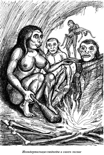 Позднее были обнаруженные останки других неандертальцев и стало ясно, что выродок имел компаньонов. Это сильно раздосадовало многих ученых. Теперь от непрошеных предков было не так-то просто избавиться. Лица у неандертальцев были длинными, высокими с вздутой верхней челюстью, зубы крупными, резцы – стертыми. Всех поразило отсутствие подбородка, какой имеется у человека. С подобным изъяном ученым до тех пор приходилось сталкиваться лишь у антропоидных обезьян. Было решено, что отсутствие подбородочного выступа, а также непомерно тяжелая челюсть является свидетельством того, что у неандертальцев не было членораздельной речи. Вероятно, они «онемели» после того, как попали в Европу.