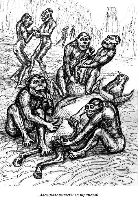 В лес австралопитеки не совались по понятным причинам. В густой растительности легко может притаиться враг, кто бы он ни был – хищник или четверорукий конкурент. Все преимущества коллективной охоты на открытом месте исчезают в лесу. Австралопитеки из-за своей «человеческой» морфологии не умели в случае опасности ловко взобраться на дерево. К тому же, леса были уже оккупированы человекообразными обезьянами, гораздо раньше австралопитеков отпочковавшимися от человеческого ствола. За то время, которое антропоиды провели в лесу, они прекрасно приспособились к древесному образу жизни. Они настолько хорошо обжились в лесу, что, как видим, живут там до сих пор. Австралопитеки же, появившиеся в Африке около 4,5 млн лет назад, вымерли около одного миллиона лет назад. Сохранив в своем поведении и облике некоторые человеческие черты, «южные обезьяны» не смогли приспособиться к дикому существованию столь хорошо, как это сделали человекообразные обезьяны.