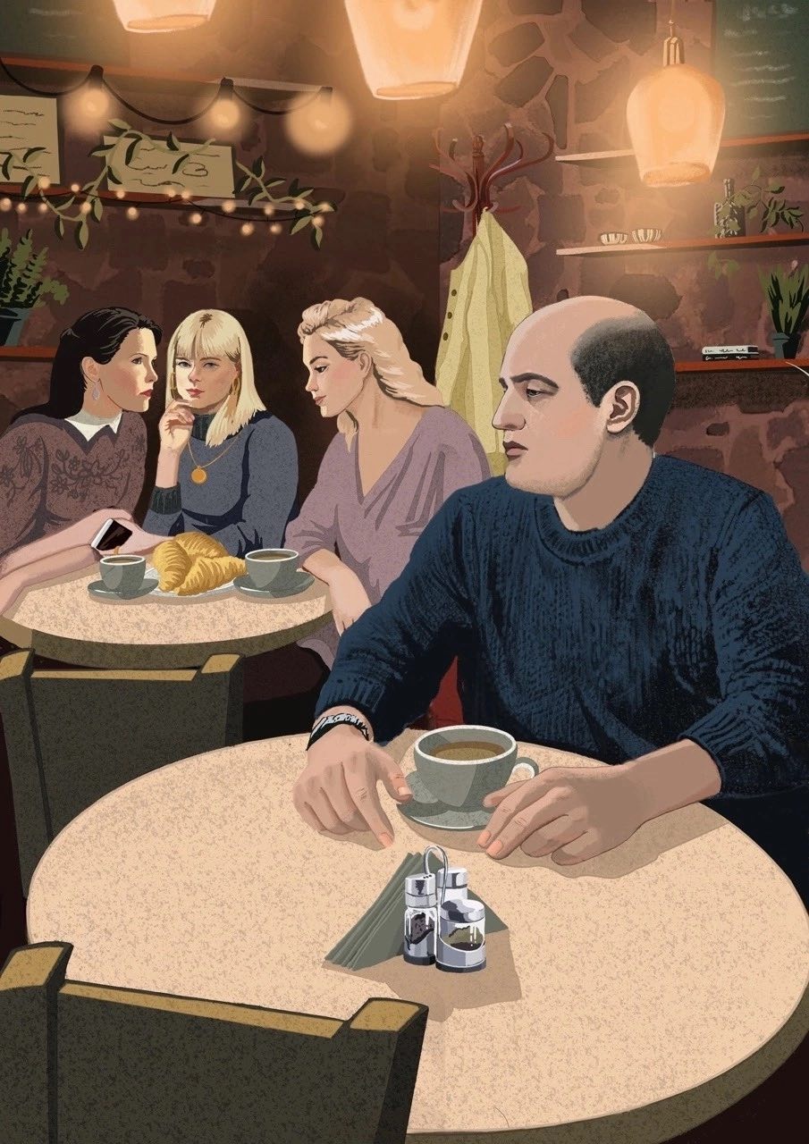 Три пары любопытных глаз явно смутили мужчину. Он шумно отхлебнул кофе и уткнулся в телефон.