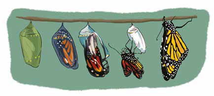 – Верно, мой друг! – бодро заключил профессор. – Монархи готовы выйти из куколок! Я вижу сквозь оболочку кокона оранжевые крылышки и тёмные полоски на них.