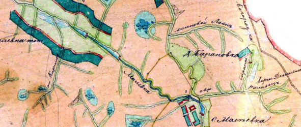 Нашли? А на следующей карте обозначен и второй путь, через Иван-озеро (сегодня Шатское водохранилище).