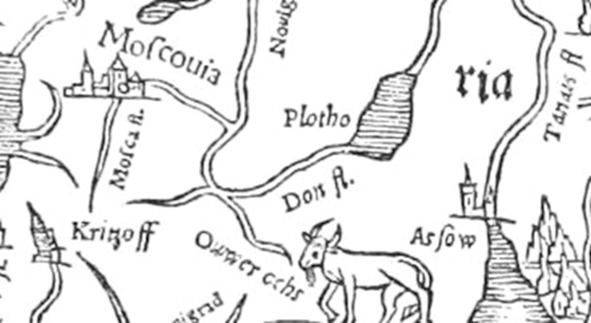 Мы видим, что экономическая причина противостояния сил в наличии, а значит, попробуем поискать на других картах, где именно мог существовать волок. Обратите внимание, что место соединения водных артерий в виде разлива обозначено словом «Plotho» ― плоты.