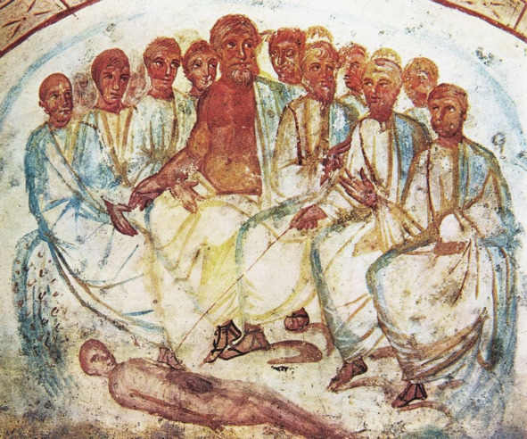 Иисус обучает Своих учеников медицине на трупе. И это – наука, а не волшебство. Фреска из римских раннехристианских катакомб.