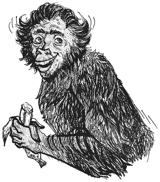 Повисла очень длинная пауза. Никто уже не собирался поймать Великого Мудреца, чтобы сдать его куда надо. Наоборот, те, кто поумнее, решили медленно двигаться к выходу. Но вождь обезьян, метнувшись к двери, начал увеличиваться в размерах, пока не упёрся головой в потолок, перекрыв своим телом путь к бегству.