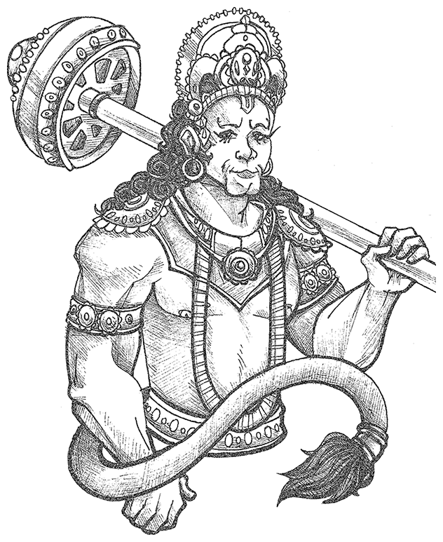 Хануман встал у стойки и, запрокинув руку, почесал спину булавой.